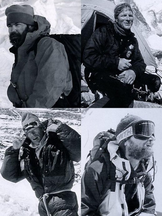 Left to right: Hall, Fischer (top) Boukreev, Krakauer (bottom)